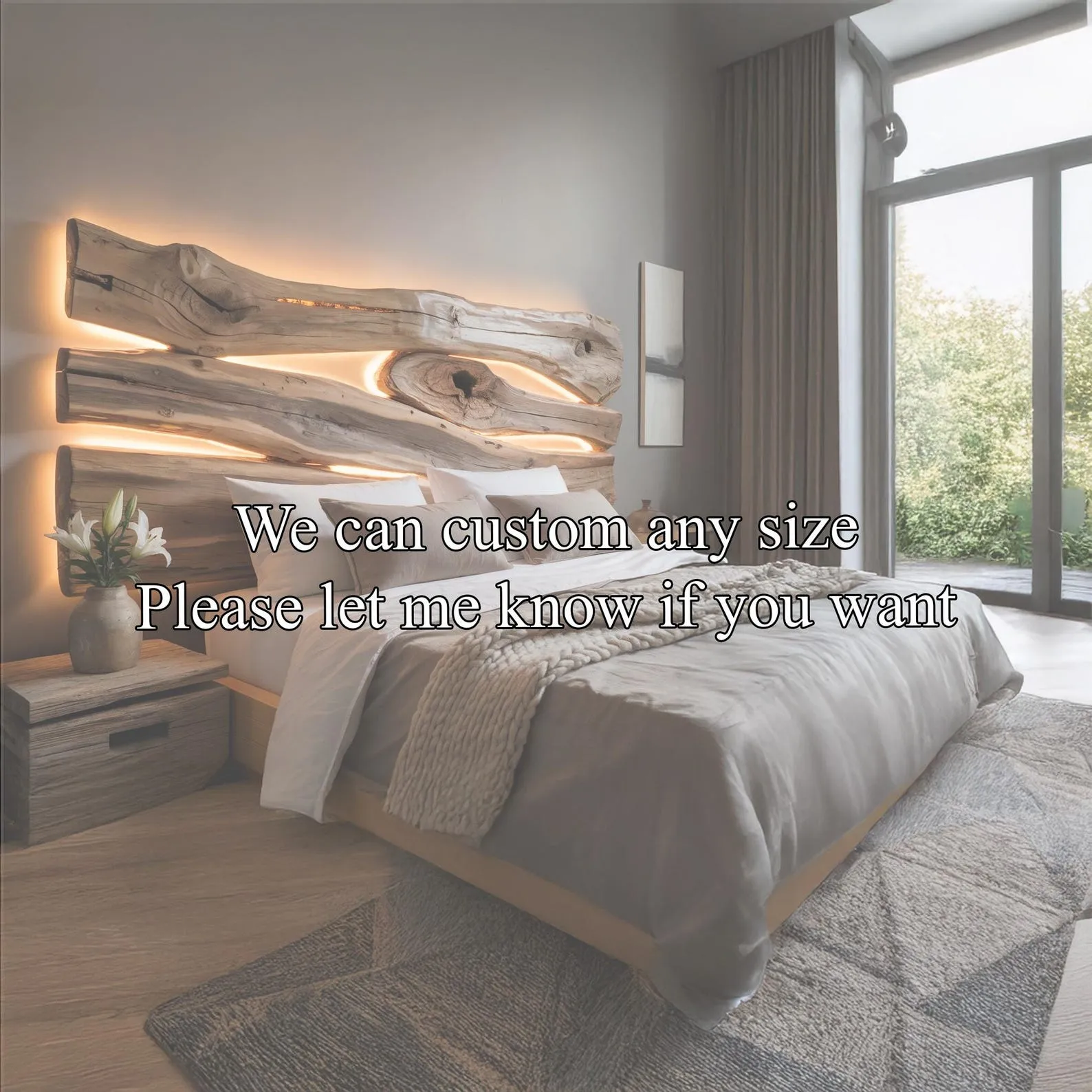 This custom solid wood wall mounted headboard turns a simple bed into a focal point. The wide wooden panel highlights natural grain patterns and subtle color variations, creating a warm backdrop behind pillows and bedding. Mounted directly on the wall, it frames the sleeping area without adding extra bulk to the floor.