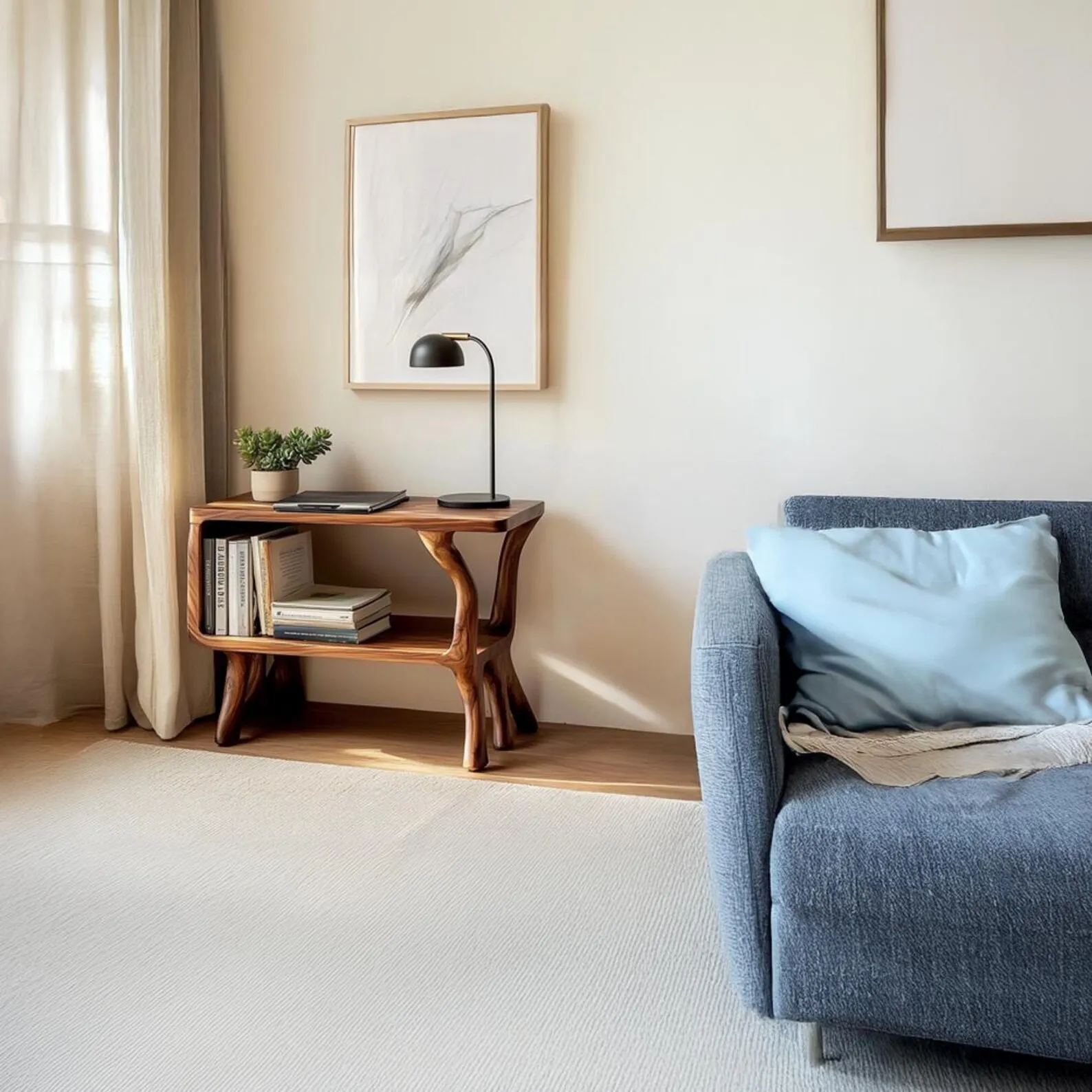 Use the surface to hold a reading lamp, a cup of tea or a small plant. The lower area can display a basket or stack of books without taking up much floor space. Its simple design blends with many decor styles, from farmhouse and cabin to contemporary apartments. This small accent table is a practical everyday piece that can also be a thoughtful housewarming gift.