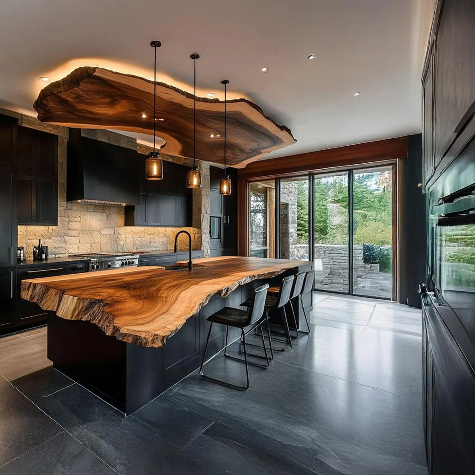 Solid Wood Live Edge Bar And Kitchen Island Table Handmade Mid Century Modern Dining Console